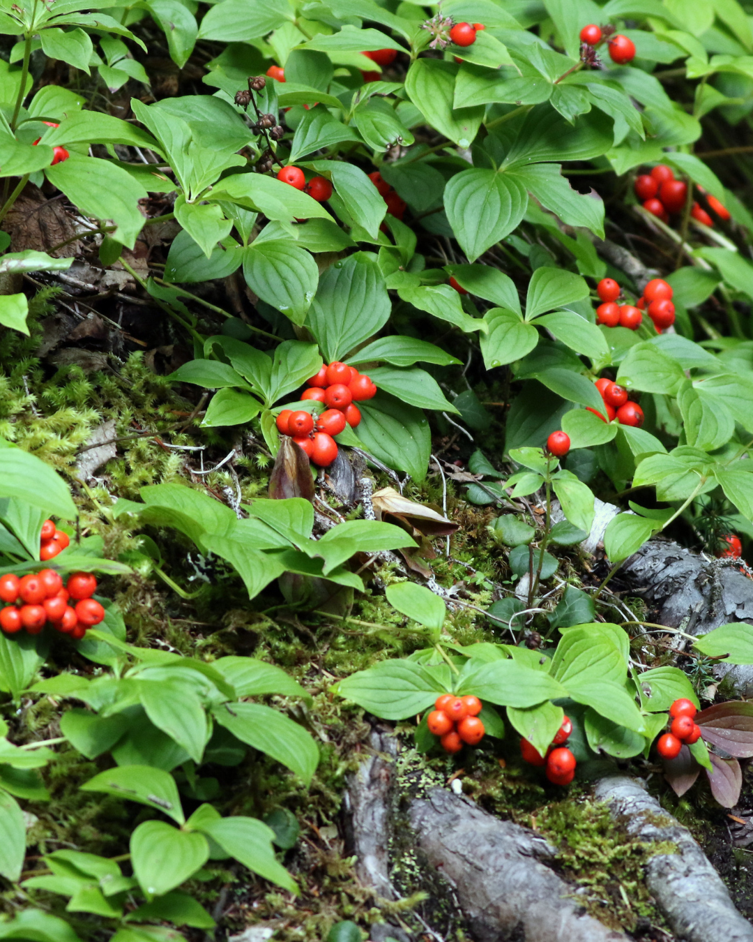 Bunchberry fruit is an important food source for dozens birds and mammals.